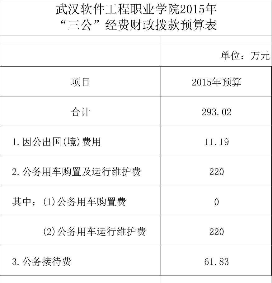 武汉软件工程职业学院2015年 “三公”经费财政拨款预算表