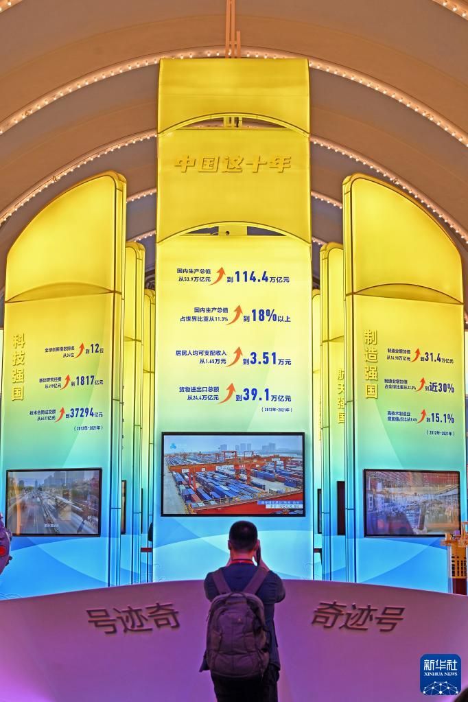 在“奋进新时代”主题成就展的中央综合展区,一艘中国经济“奇迹号”巨轮模型吸引了参观者的目光。在时代洪流中奋楫扬帆,于惊涛骇浪中行稳致远,非凡十年深刻启示:正是因为确立了习近平同志党中央的核心、全党的核心地位,确立了习近平新时代中国特色社会主义思想的指导地位,党才有力解决了影响党长期执政、国家长治久安、人民幸福安康的突出矛盾和问题,消除了党、国家、军队内部存在的严重隐患,从根本上确保实现中华民族伟大复兴进入了不可逆转的历史进程。