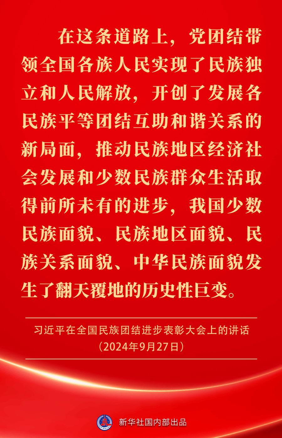 全国民族团结进步表彰大会9月27日上午在北京举行。中共中央总书记、国家主席、中央军委主席习近平出席大会并发表重要讲话,一起来看金句。