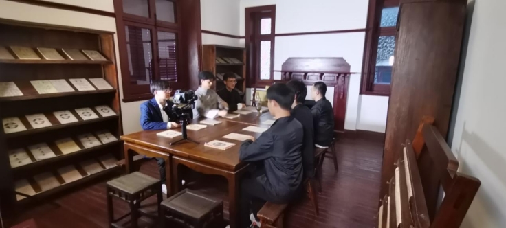 在武汉中共中央机关旧址纪念馆,同学们参观了中共中央秘书厅、中共中央政治局常委会会议室和蔡和森等领导人办公室等的复原陈列,观看了《中共中央在武汉》陈列展,通过珍贵的历史照片、实物、文献、档案等,深入了解中共中央在武汉领导中国革命的光辉历史。正值CCTV纪录片拍摄之际,6名信息学院学子参演“中共中央在鲍公馆召开的政治局紧急会议”的场景。参演学生王鸿钢表示:“这是我第一次参加纪录片的拍摄,能够身临其境参演这段重要的历史事件,深感荣幸。这次暑期社会实践活动让我对中国共产党的历史有了更加深刻的认识和了解,今后我会带着先辈们的革命精神继续前行。”