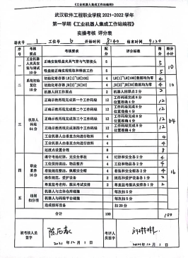 工业机器人技术专业作为我校提质培优、省级双高建设的专业群核心专业,持续开展“岗、课、赛、证”融通教学改革,通过课堂革命、模块化教学改革等方式,将证书考核内容作为《工业机器人自动化产线调试》、《工业机器人集成工作站编程》、《工业机器人技术基础》等课程实践考核、理论考核任务,并通过采用过程性考核,注重学生动手能力的培养。