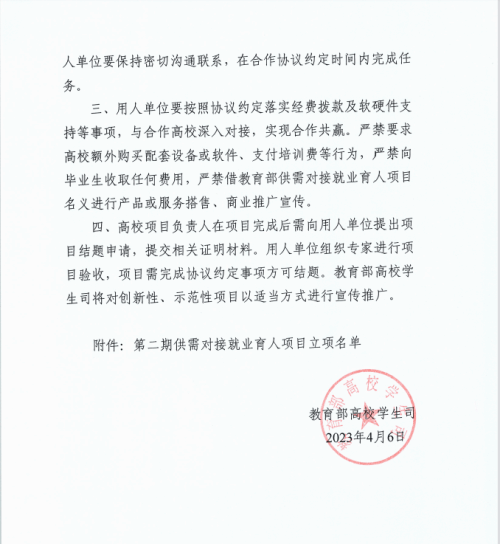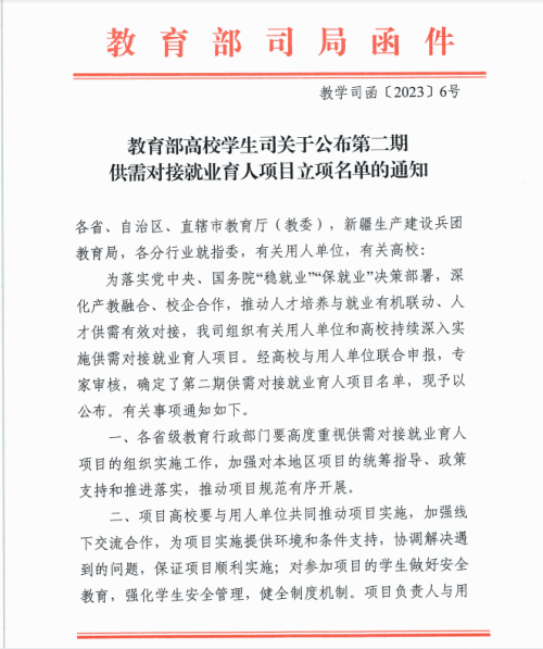 此次供需对接就业育人项目的成功立项,得益于我院长期以来重视产教融合、校企合作工作。下一步,学院将按照项目实施要求,加强过程管理,落实合作内容,帮助毕业生深入了解行业需求和趋势,不断提升毕业生就业和实践能力,为毕业生提供更多专业对口的实习岗位和就业机会,在校企合作双赢基础上实现人才培养与社会需求良性互动,让毕业生实现更充分、更高质量就业。