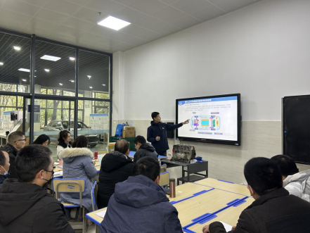 为促进教师弘扬师德师风、提升教学实践技能水平和教学创新能力,助力学院加快教师教学梯队建设,培养教育教学带头人。汽车检测与维修技术教研室于2023年2月13-16日组织教师进行混合动力汽车技术培训。培训现场,深圳风向标教育资源股份有限公司黄立权高级工程师以比亚迪秦DMi混合动力汽车为例,介绍了高压安全知识、分析了动力电池包、高压配电盒系统、双电控系统、EHS电混系统、充电系统、发动机系统、整车低压系统和车身底盘系统的结构、特点、技术原理。