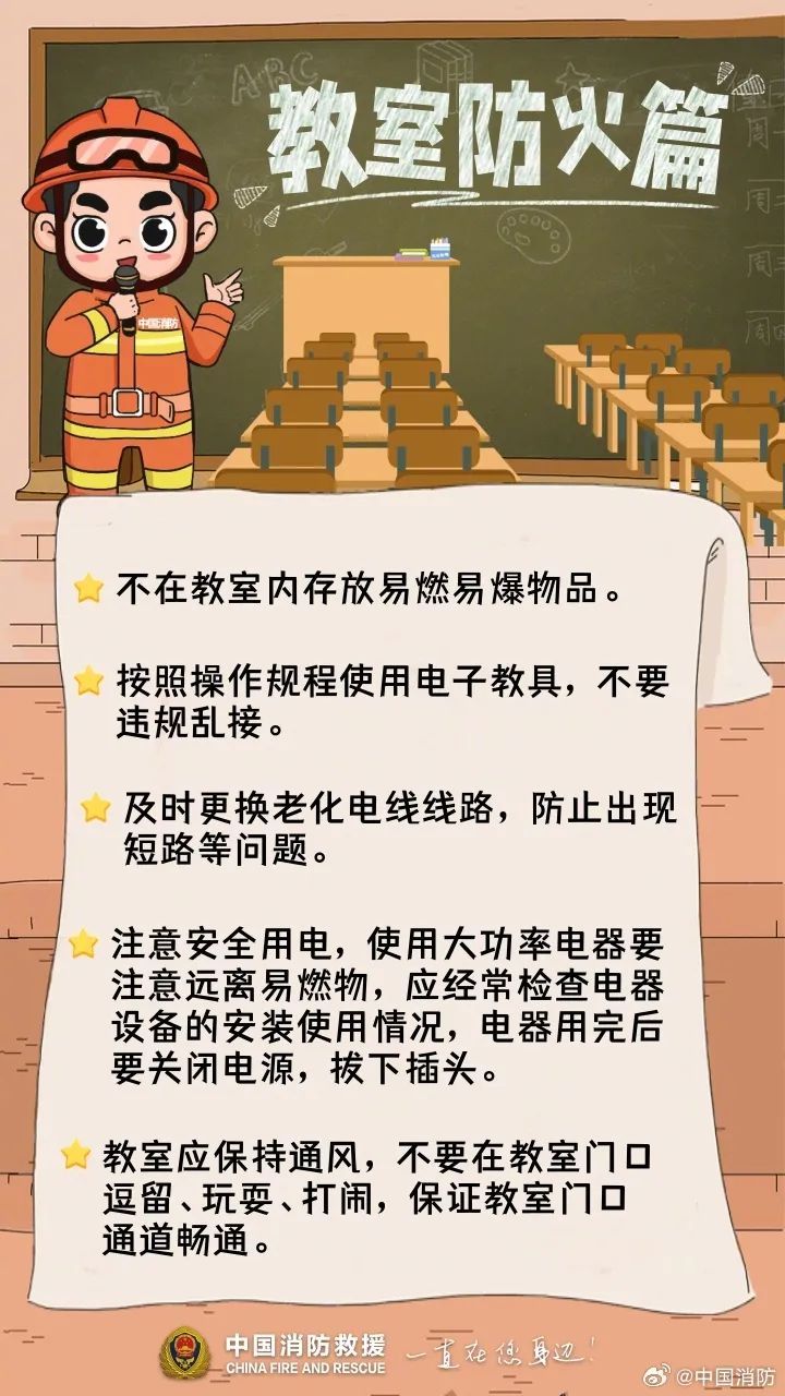 今年9月1日,中国消防微博发布了关于校园的消防安全注意事项