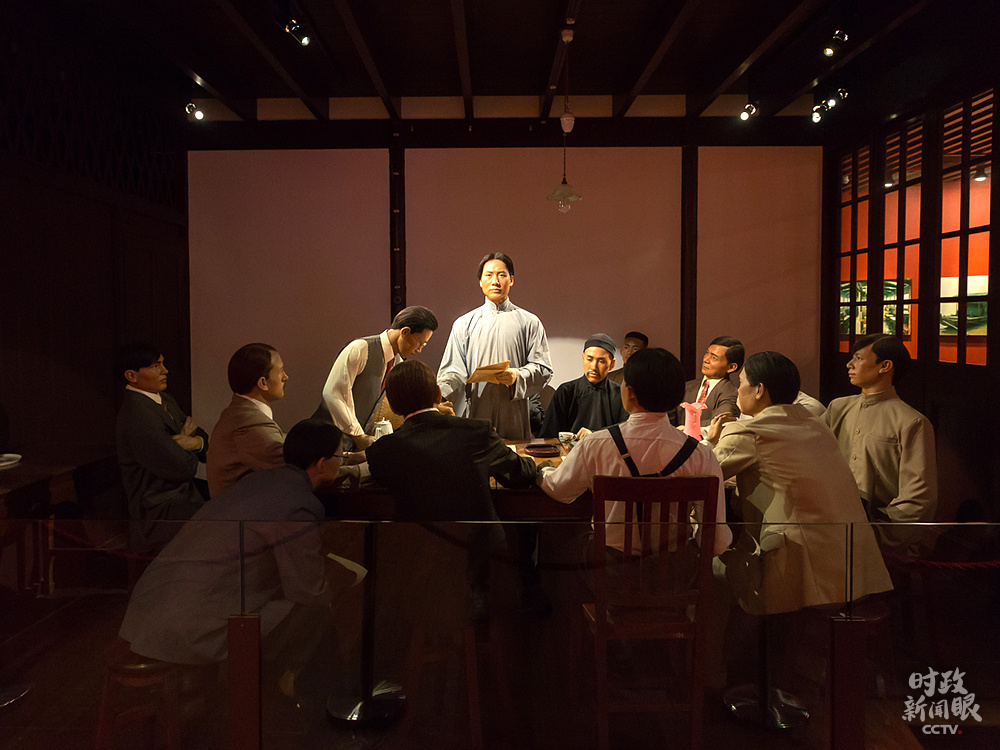 中共一大会址纪念馆,还原“一大会议”现场的蜡像展览。