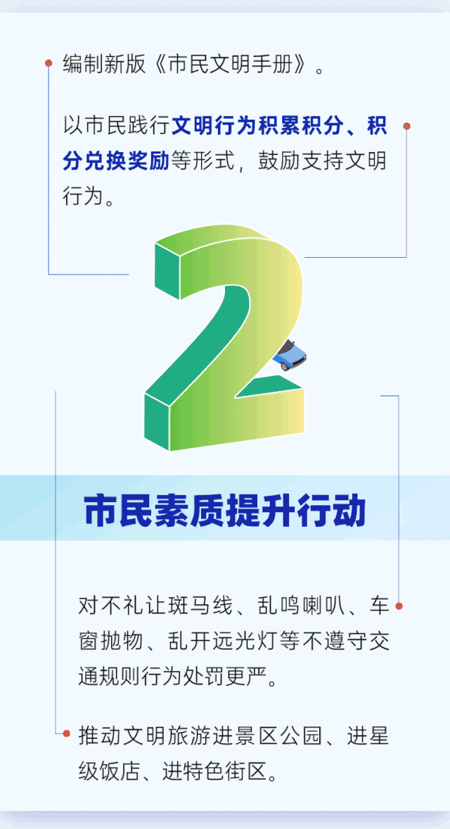 “一个城市的文明不止于外表的光鲜,更在每一个市民的举手投足之间,在日常过马路、排队上车、遛狗牵绳、不乱扔垃圾等文明习惯之间。”市文明办相关负责人介绍,各行动分阶段开展,贯穿全年,并将建立长效机制,不断深化文明城市常态化建设。