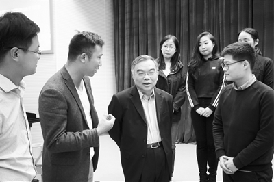 报告会后,顾海良(左三)与青年学生深入交流。王瑶 摄