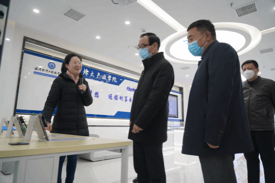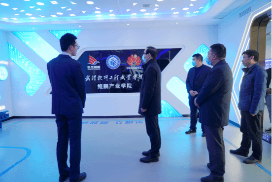陈红辉先后来到武软客厅、烽火产业学院和鲲鹏产业学院,看望学生,深入了解我校科技创新、产教融合和人才培养情况。校党委书记马蜂汇报了学校基本情况、办学成果和发展规划。