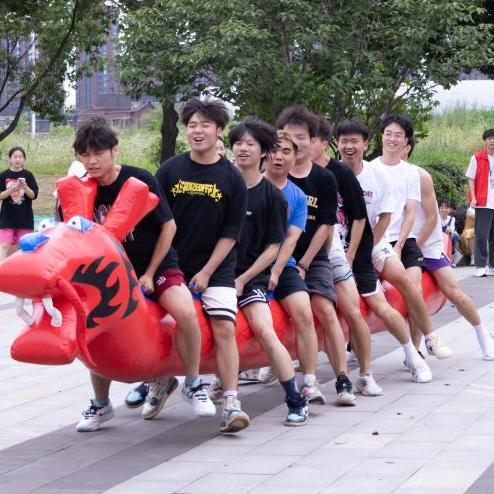 “龙舟竞渡翻白浪,吼声震天庆吉祥”。陆地龙舟的比赛现场,在计算机学院工作人员的组织下,“龙舟”队伍如离弦之箭飞奔而出,伴随 " 左右、左右 " 的口号,大家通力协作,直奔终点。赛龙舟不仅是一项传统体育项目,更是承载着爱国主义精神和集体主义精神的运动方式。