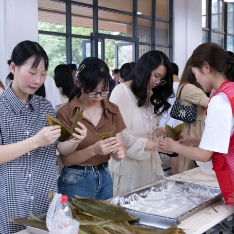 吃粽子、品香茗是端午节的传统风俗。“解棕正思端午,怀沙莫问汨罗”。在包粽子摊位前,生命健康学院的学生正在指导师生们动手包粽子。虽然大多数都是“生手”,大家都学得很认真,表示能亲手体会这种传统美食的制作本身就是一种极大的幸福,拿着自己亲手包的粽子,这个节日过得与众不同。