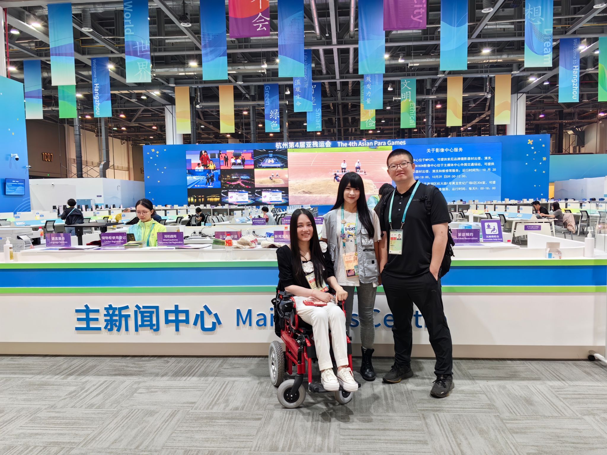 在亚残运会主媒体中心工作,作为唯一一个坐在轮椅上的媒体人,董明常常在采访他人的同时,也成为国内外记者采访的对象。大家看到她的状态和精神都很惊奇,几乎忘记她坐着轮椅。董明也努力通过自己的视角去做一些采访报道,让角度更加新颖。“这次参与亚残运会的工作,我能够学习到更多新闻宣传方面的业务知识,希望带回到自己的本职岗位中,更好地服务社会、服务师生,讲好湖北故事,传播武汉、武软(武开大)的好声音。”