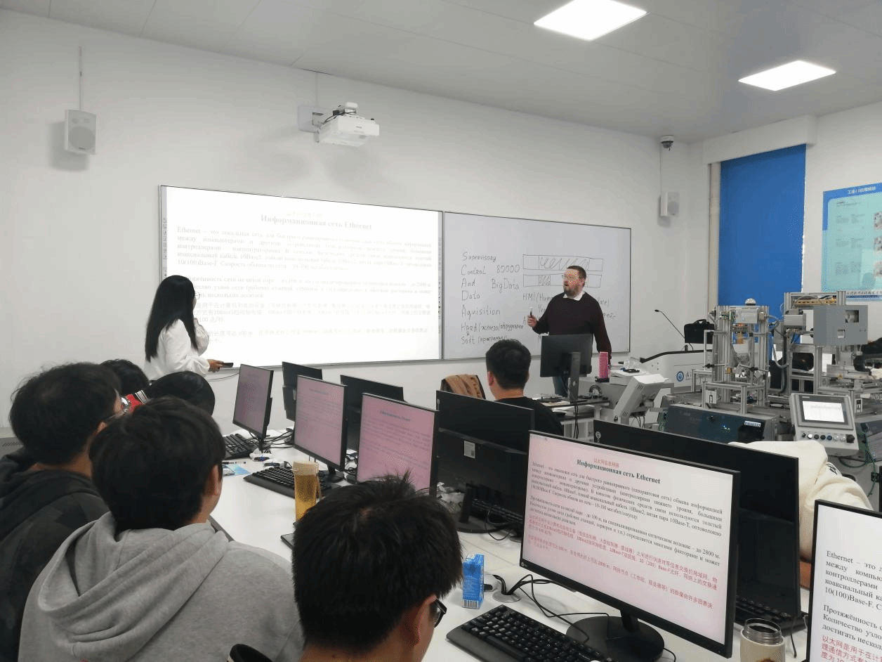 根据中俄合作办学人才培养方案,本学期俄方将承担软件技术专业4门核心课程教学任务、机电一体化专业5门核心课程教学任务,以俄方教师独立讲授及与中方相关课程教师相互配合的形式完成。俄方选派的优秀专业教师不仅出色地完成了专业课教学,也提高了学生的俄语听力水平和口语表达能力。