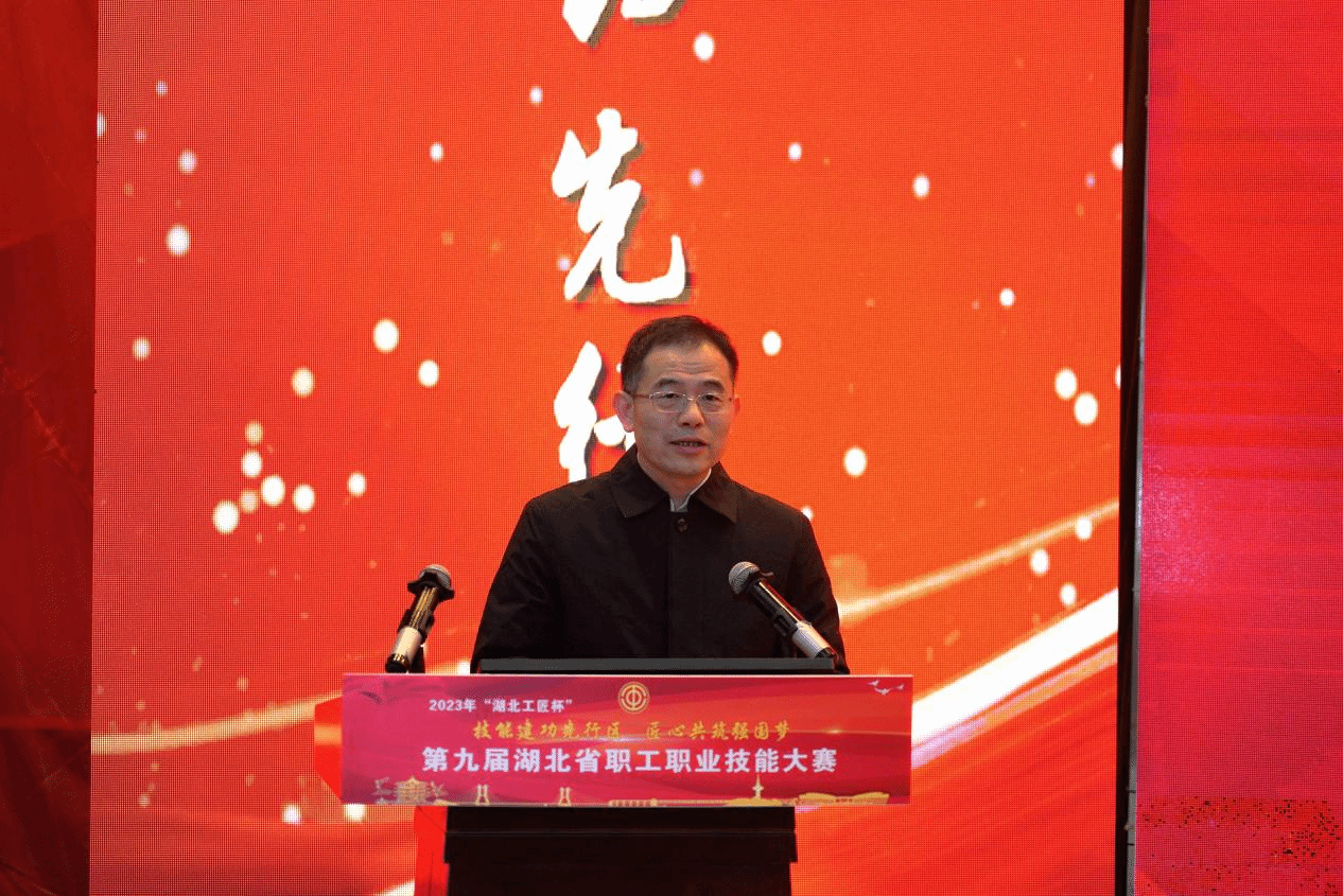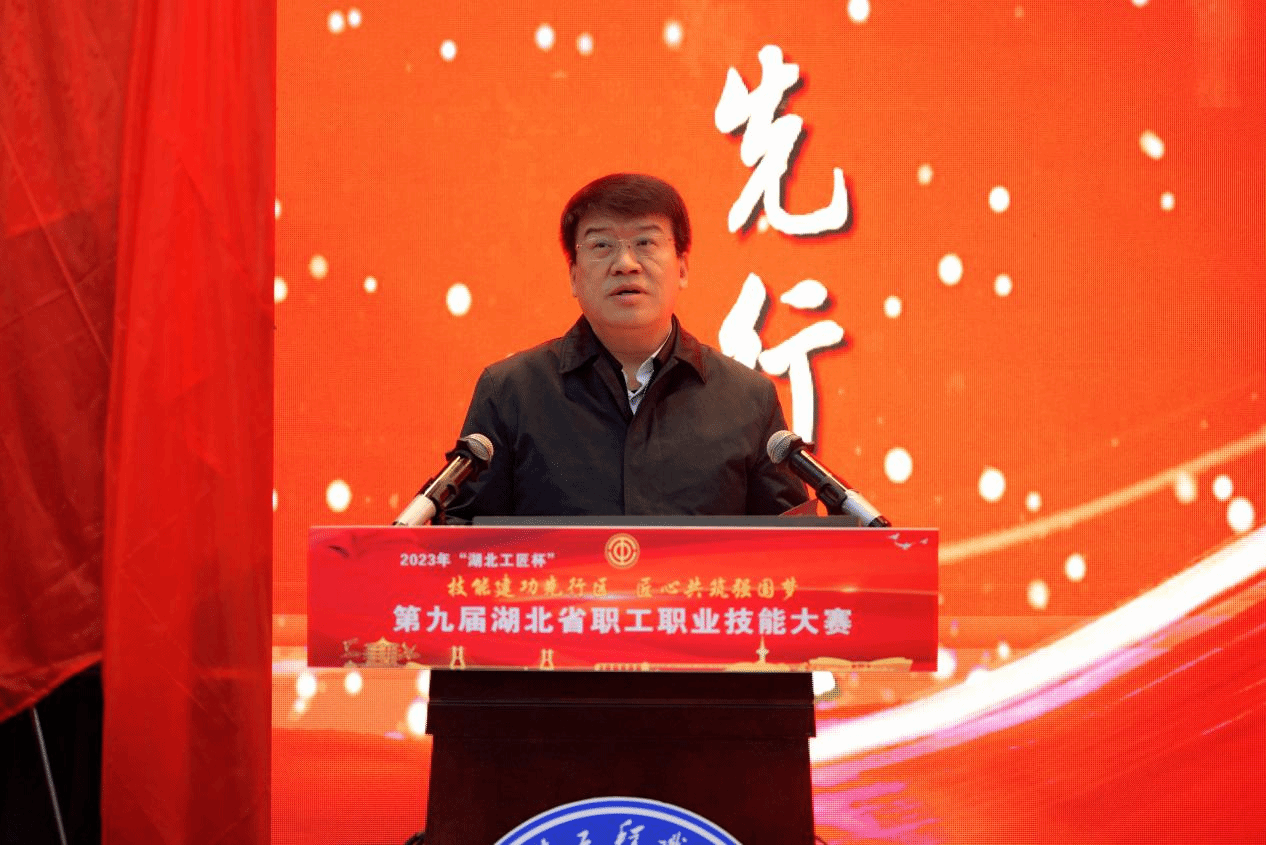 12月6日,大赛闭幕式在我校学术楼1号报告厅举行。省总工会党组成员、副主席冯家欣出席闭幕式并讲话,冯家欣对本届大赛的成功举办表示充分肯定,强调在全省上下正深入学习贯彻习近平总书记关于工人阶级和工会工作重要论述,以及习近平总书记同中华全国总工会新一届领导班子成员集体谈话时的重要讲话精神之际,各级工会要按全国人大常委会副委员长、中华全国总工会主席王东明同志到湖北调研时提出的要求,广泛深入持久开展各种形式的劳动和技能竞赛,深化“五小”等群众性创新创造活动,在新征程上充分发挥工人阶级主力军作用,为推进强国建设民族复伟业建功立业。他鼓励广大职工要以获奖选手为榜样,立足岗位,提升技能,成才成长;希望各地各企业充分发挥大赛的示范作用,更加重视技术工人队伍建设,培养造就更多的荆楚工匠、湖北工匠、大国工匠。