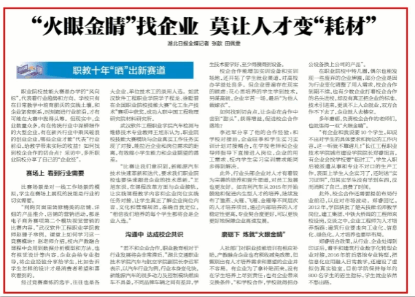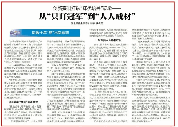(通讯员 李彦汝)4月9日、10日,《湖北日报》推出“职教十年‘晒’出新赛道”系列报道,其中数次“晒”出我校师生省赛获奖经验及心得。
