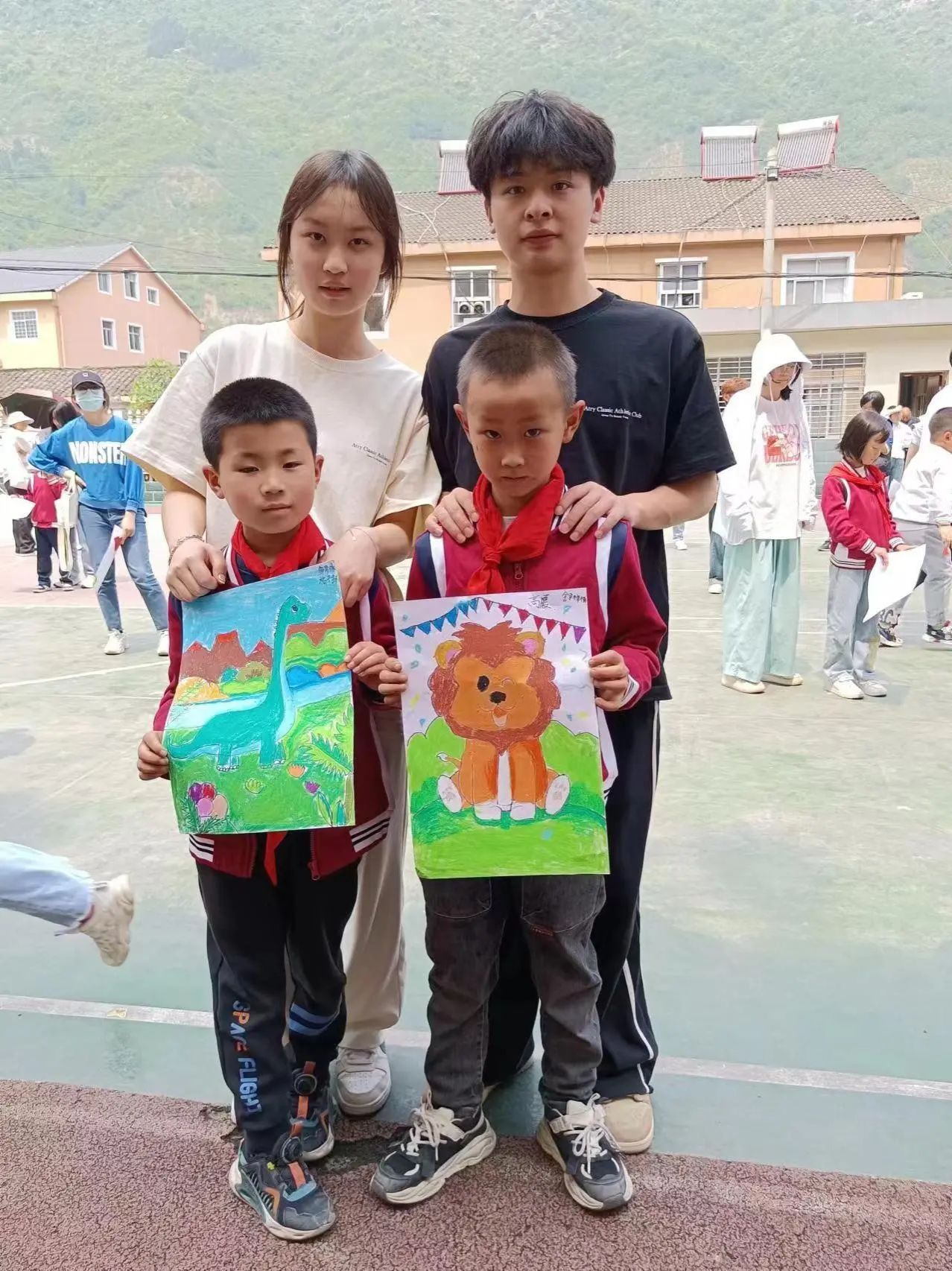 来自艺术与传媒学院的同学们,现场用生动的语言给弟弟妹妹们介绍了绘画的基本概念,讲解了线条的运用、色彩的搭配以及构图的技巧,让孩子们对绘画有了更深入的了解。为了让他们更好地掌握绘画技巧,同学们一笔一画示范。他们先是在画板上画出了简易的素描作品,引导孩子们观察其中的线条和构图,随后拿出画笔和颜料,教孩子们运用不同的色彩使整幅画更加和谐。
