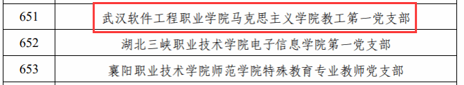 (通讯员 郭晓雯)近日,教育部公布了第三批“全国党建工作样板支部”建设单位验收通过名单,武汉软件工程职业学院马克思主义学院教工第一党支部顺利通过验收,成为学校第二个“全国党建工作样板支部”。