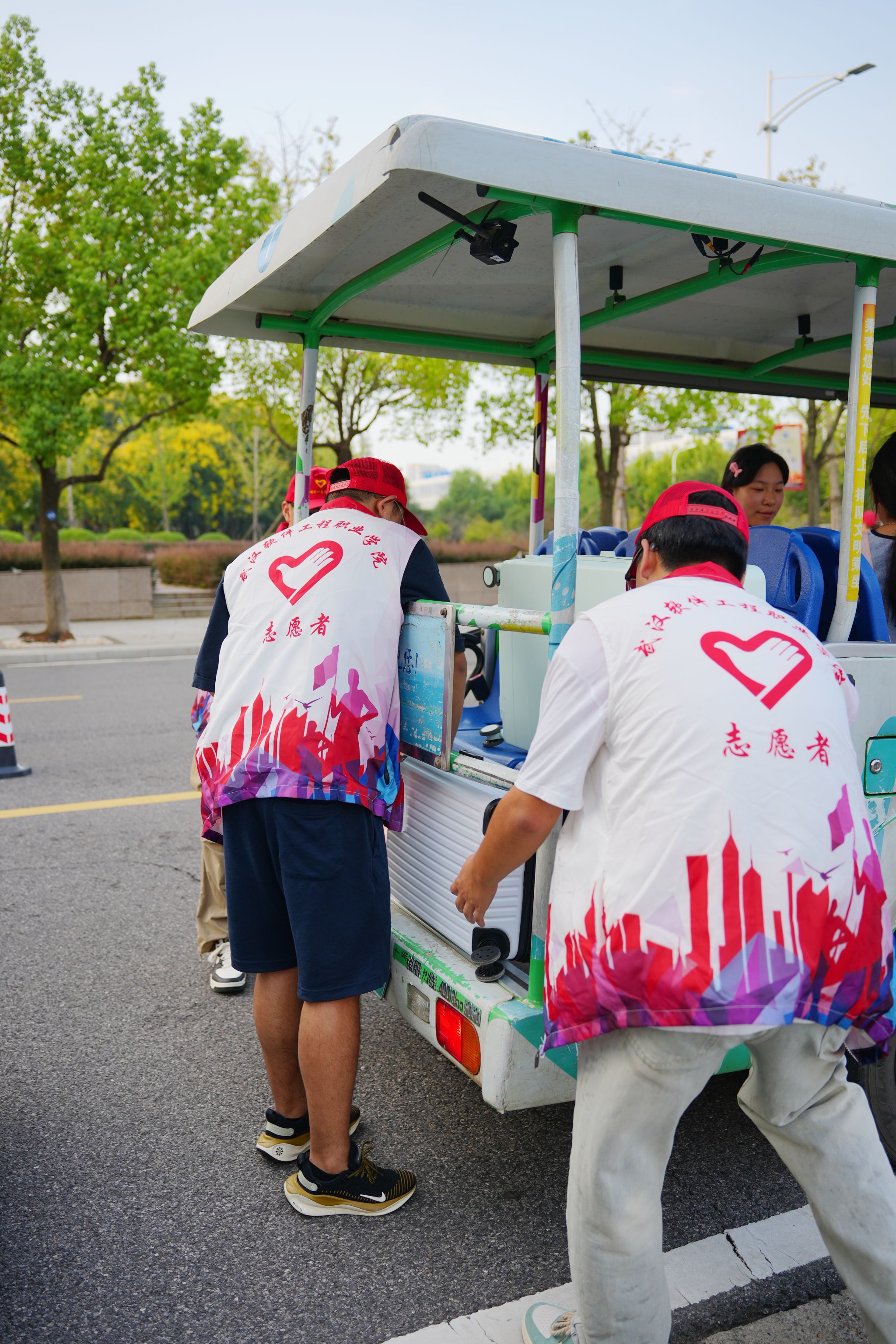 身穿五颜六色小马甲的志愿者们