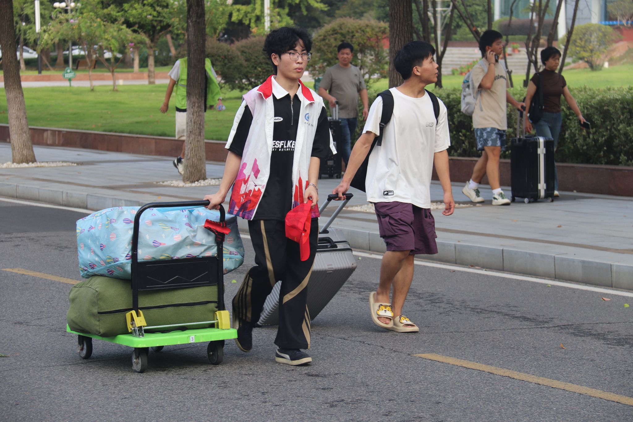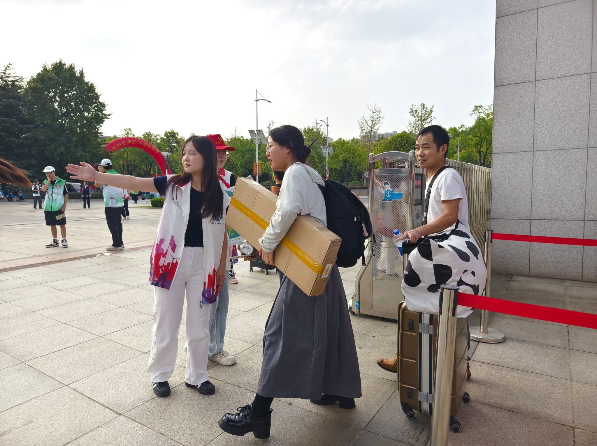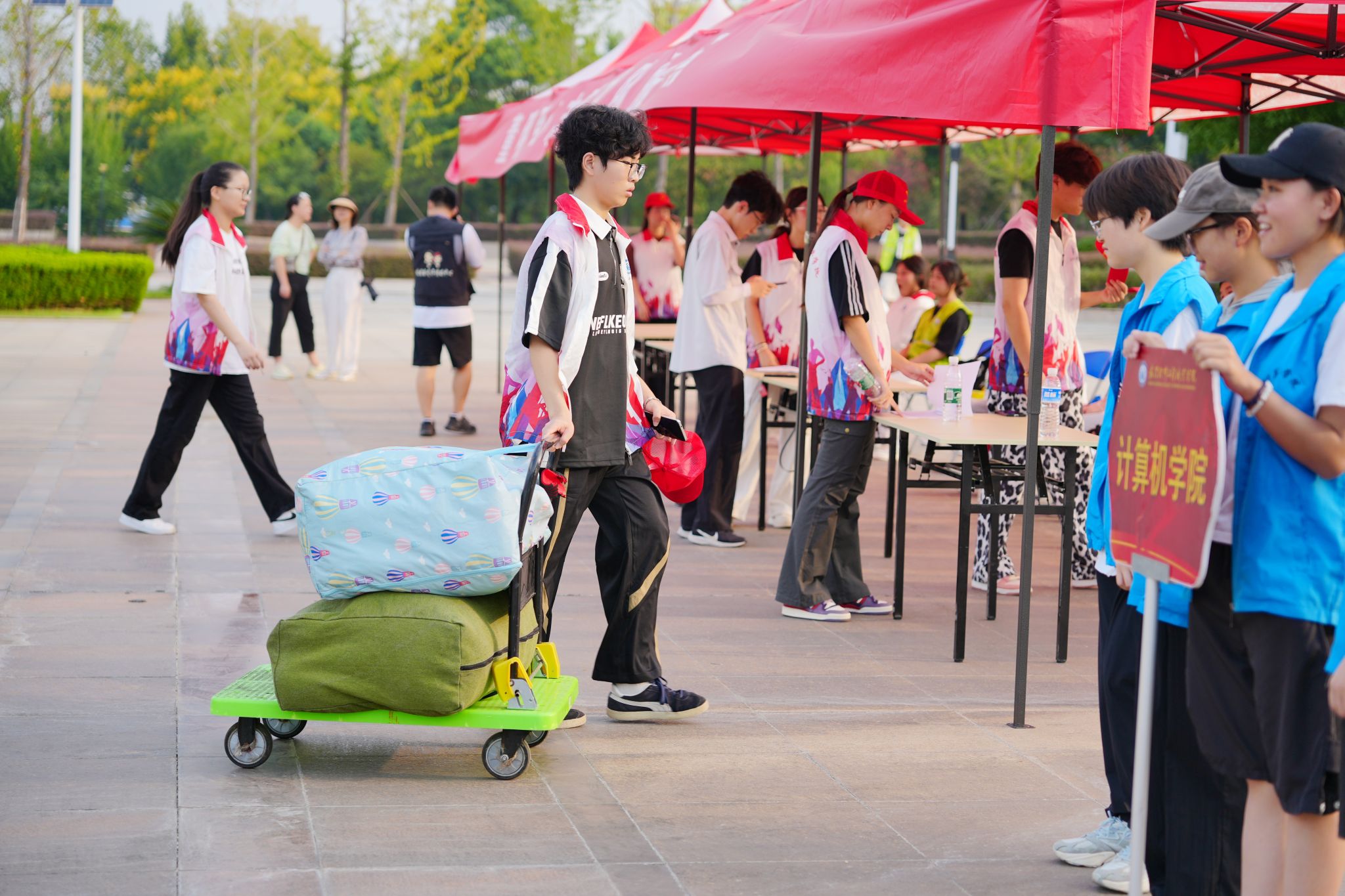 穿梭在校园内外各个迎新点位