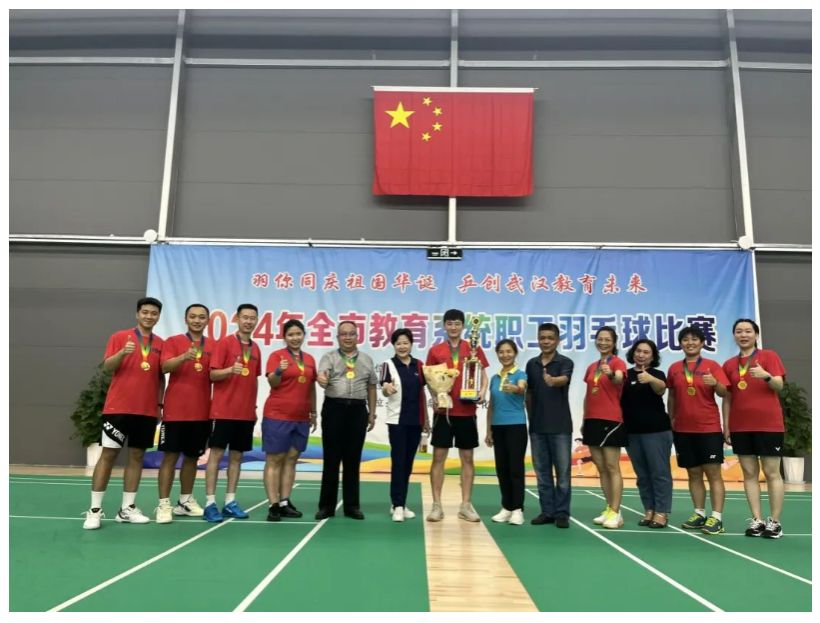 (通讯员 余湘)“羽”你同庆祖国华诞,“乒”创武汉教育未来。近日,在2024年全市教育系统职工羽毛球比赛中,我校教职工代表队以第一阶段冠军身份,代表武汉市教育局机关直属单位联队参赛,最终摘得桂冠。