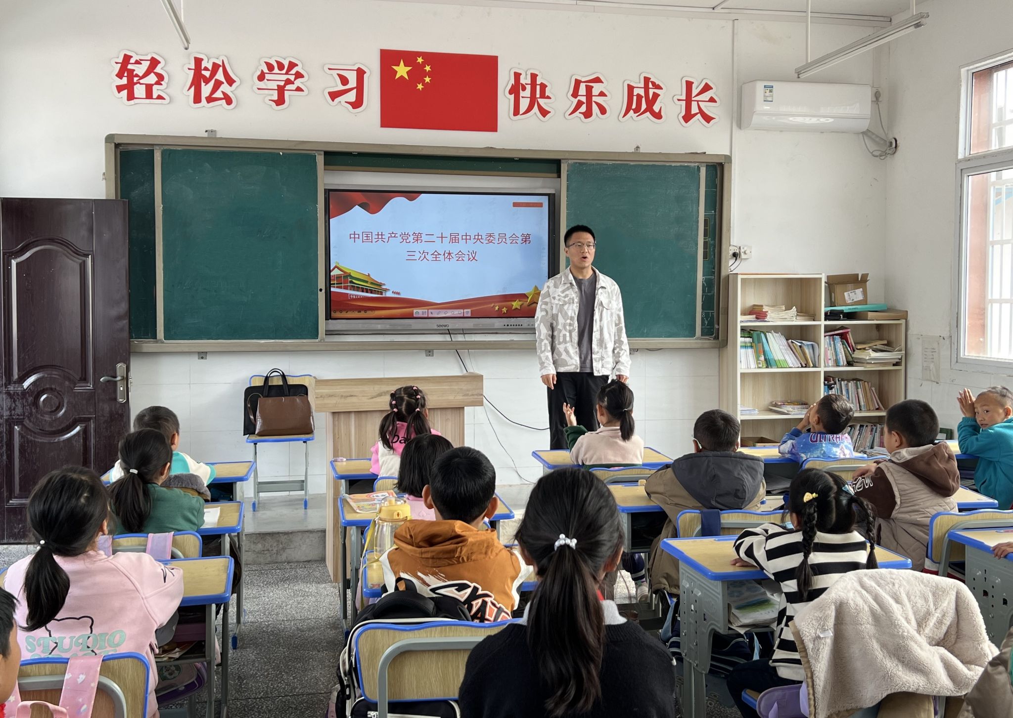 段涛老师围绕党的二十届三中全会的背景、主要内容、重大意义进行理论宣讲,引导枫洞小学的孩子们认识到自己作为新时代的青少年,在国家全面深化改革、推进中国式现代化的进程中肩负起责任和使命,鼓励孩子们从小就要树立远大理想,将个人成长与国家发展紧密结合起来,为实现中华民族伟大复兴的中国梦贡献自己的力量。
