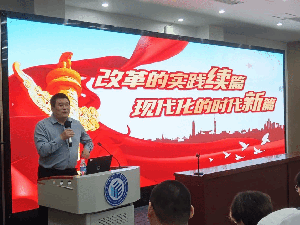 王中林从自身经历、学校发展历程、青年人成长的机遇切入,让同学们在故事与场景中感受着改革的温度与深度。他从把握历史主动,锚定关键领域、遵循改革规律三个方面带大家学习了新时代党的改革路径,重点强调了“绿水青山就是金山银山”这一科学理念在国家发展战略中的重要地位,详细讲述了我国在生态环境保护与经济发展协同共进方面所作出的努力和取得的成就,鼓励同学们发挥专业特长,积极参与家乡建设,在时代的浪潮中找准自己的定位,将个人的成长与国家和民族的命运紧密相连,积极投身到社会主义建设事业中去。