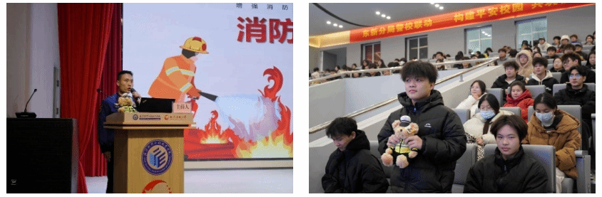 (通讯员 胡馨)12月12日下午,学术报告厅一号厅,我校成功举办“警校联动 共筑安全”东新公安分局平安进校园活动,武汉市公安局东湖高新区分局同心派出所所长黄亮、市安委办内保大队教导员谢刚、同心所副所长潘颂华走进校园,为师生带来精彩的安全课。
