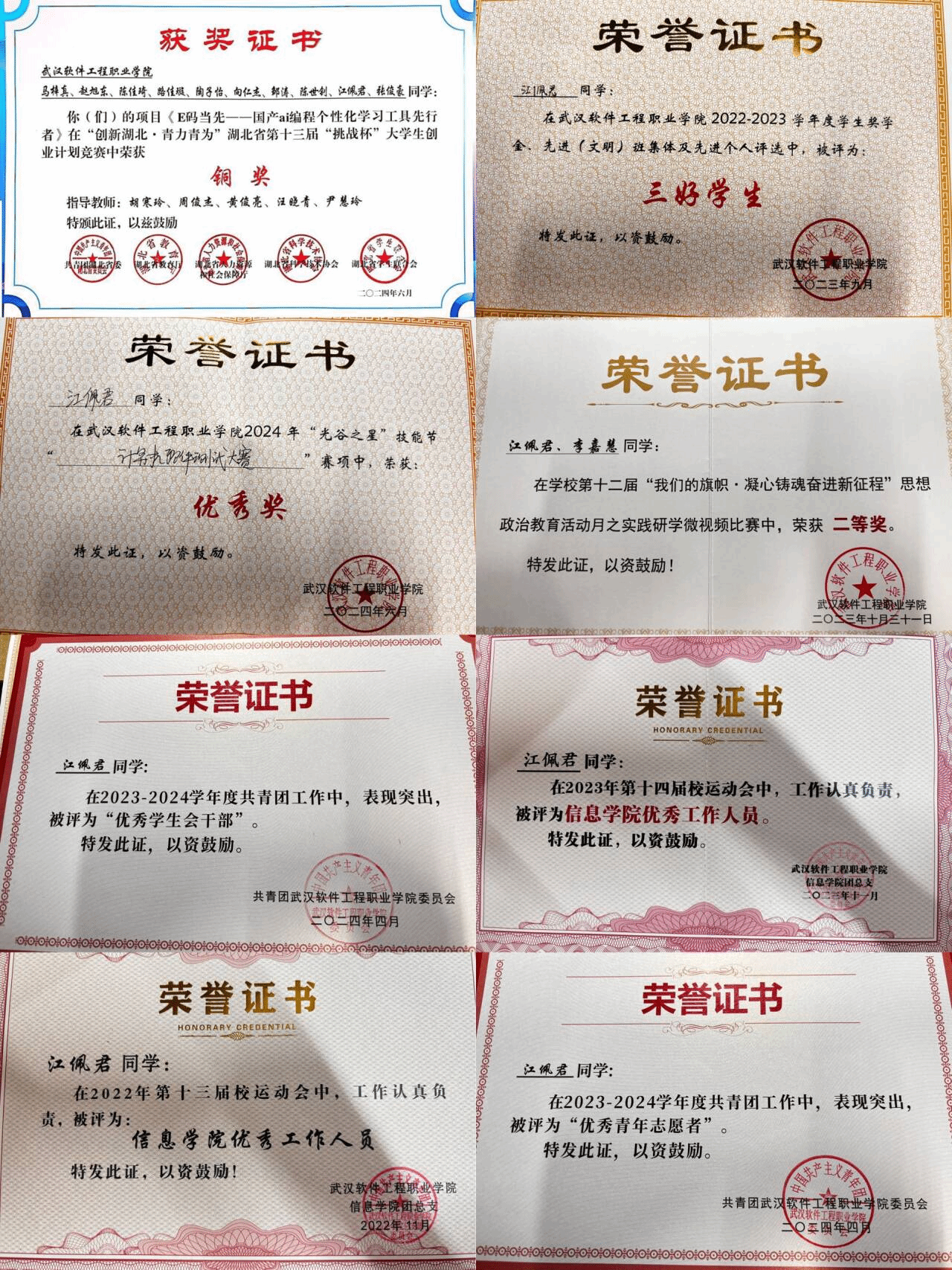 2023年获“优秀团员”称号;