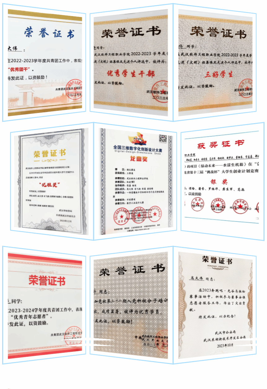 2023年 荣获“优秀团干”,“优秀心晴天使”,“优秀个人”等称号。