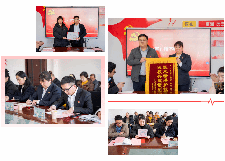 学校为武昌医院临床心理科党支部颁发聘书、授予锦旗,党员们一同重温入党誓词、诵读党章、集中学习国家主席习近平发表的二〇二五年新年贺词和《群众身边不正之风和腐败问题典型案例》。
