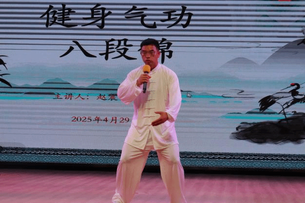 体育学院教师孙园和赵震银共同带来健身气功八段锦的课程,八段锦作为国家级非物质文化遗产,兼具健身与养心功效。同学们在老师的引导下舒展筋骨,调整呼吸,一同体悟传统养生功法的魅力。
