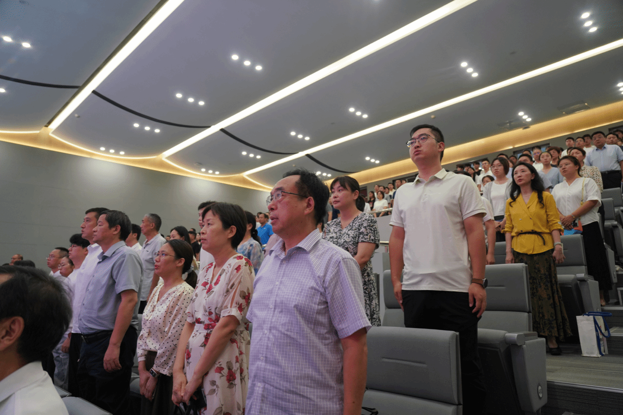 大会在庄严的国歌声中拉开帷幕,全体人员起立,高唱国歌,爱国情怀与教育使命在这一刻同频共振。