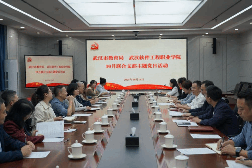(通讯员 刘雯丽)为深入贯彻落实习近平总书记在中共中央政治局第二十次集体学习时的重要讲话精神,推动党建与业务工作深度融合,10月17日下午,武汉市教育局办公室、组织部、高等教育处党支部与我校党政办公室、党委组织部、信息化中心党支部携手开展“党建领航,智赋教育——探索AI+教育新路径,赋能教育治理现代化”联合主题党日活动,六个支部30余人参加。
