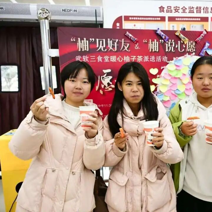 (通讯员 张欣玉)12月4日,当冬日的寒风悄然拂过校园,武汉软件工程职业学院的三食堂里却暖意融融。一场名为 “‘柚’见好友,‘柚’说心愿” 的暖心柚子茶派送活动,让这个平凡的周四下午变得格外温暖甜蜜。