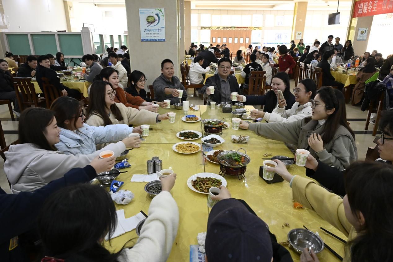 师生们围坐一堂,品尝着刚出锅的热气腾腾的饺子,暖意驱散了冬日的严寒。品尝美味之余,各学院学子自发献上精彩节目。动人的歌声接连唱响,旋律传递着青春情谊,少数民族同学们带来了热情奔放的民族舞蹈,他们载歌载舞,瞬间点燃全场,将节日气氛推向最高潮。