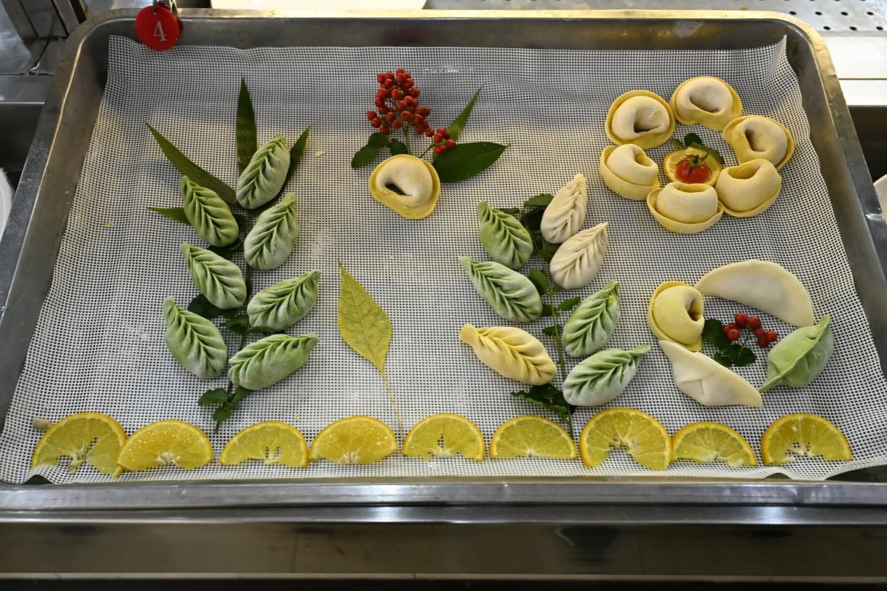 活动现场分为包饺子比赛和座谈交流两大环节。在包饺子比赛区域,11支师生代表队分工明确、配合默契。揉面、擀皮、包馅,动作娴熟者行云流水,新手小白们则在老师的耐心指导下认真学习,一个个形态各异、饱含心意的饺子很快堆满了餐盘。各代表队充分发挥创意,精心调配出各具风味的特色馅料,同学们巧手翻飞,创作出元宝饺、月牙饺、麦穗饺等各式造型的饺子。