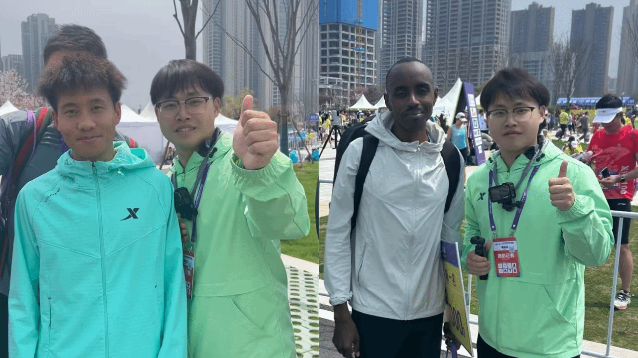 采访途中,他遇到了以资深跑者身份完成半马的央视知名主持人朱迅,迅速捕捉到朱迅赛后向观众打招呼的珍贵瞬间。在全马终点,他遇见男子国内第一名何杰与国际第一名约翰·姆布鲁·穆鲁里,与两位冠军合影留念,为此次汉马报道之旅留下高光印记。