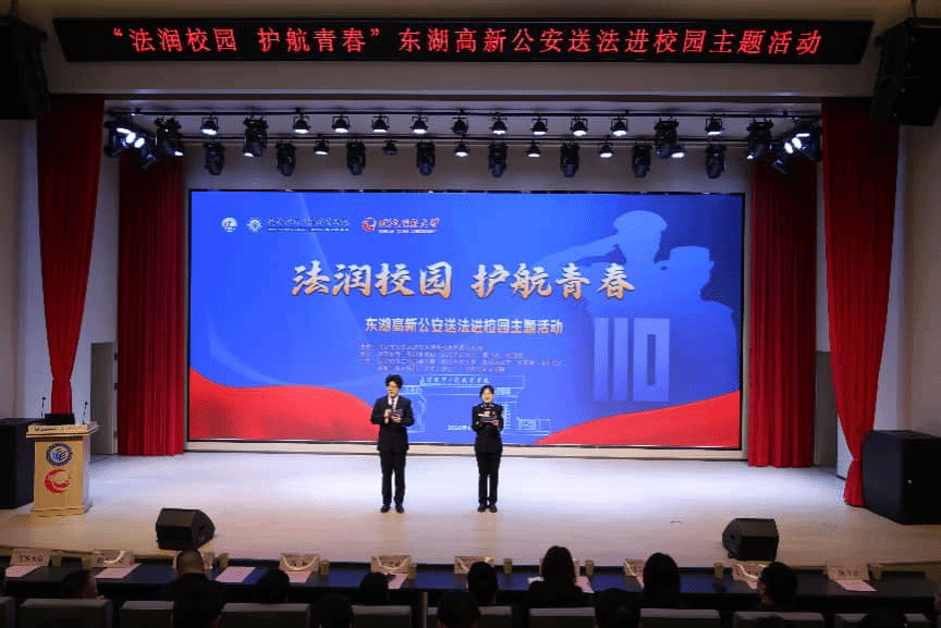 外场互动结束后,“警校共育法治文化剧场” 正式开讲。活动以五大篇章层层递进,用宣讲、视频、表演相结合的形式,把法治安全知识送到师生身边。