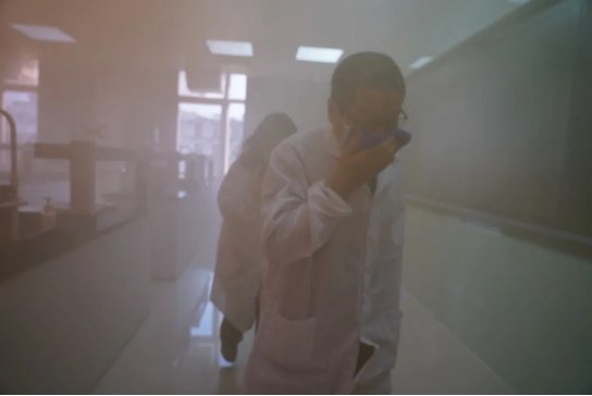 实验室安全事故演练现场——疏散自救
