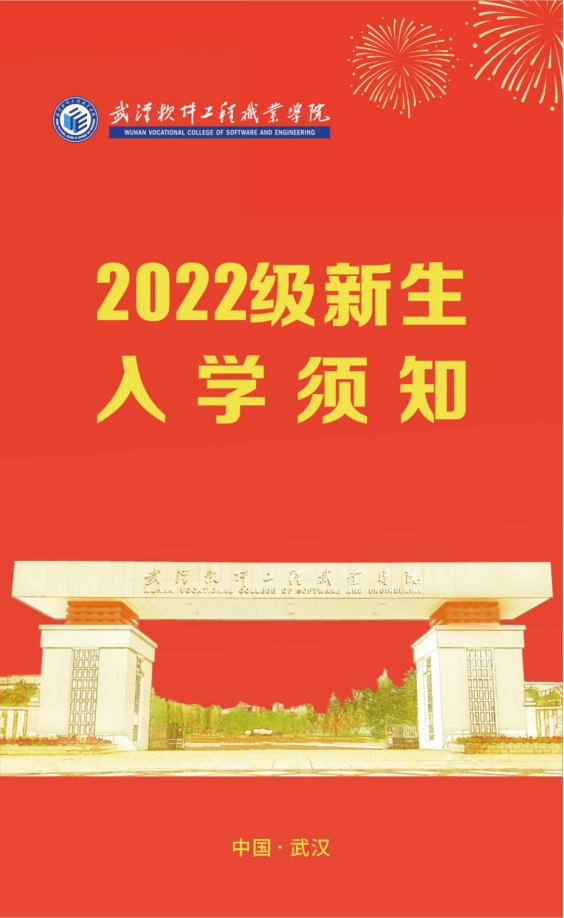 祝贺你被我校录取!欢迎你来到国家优质专科高等职业院校、国家示范(骨干)高职院校、湖北省“双高校立项建设单位”武汉软件工程职业学院学习生活。为方便你顺利入学,请仔细阅读入学须知,并按要求做好各项入学准备。