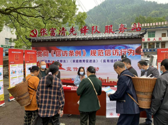 5月下旬,马克思主义学院教工第一党支部来到恩施州来凤县百福司镇廖家坝村开展“送法下乡”实践活动。本次法治宣传教育活动通过设立法律咨询台、发放法律知识读本、展出宣传展板、现场讲解、普法知识竞赛等方式进行,贴近生活实际、贴近村民利益,累计发放各类宣传资料300余份,接待村民咨询百余人次,真正把法律服务送到群众身边。据悉,今年3月底,马克思主义学院(党政办公室)获评“2016—2020年武汉市普法工作表现突出单位”,我校是武汉市教育系统唯一获此荣誉的高职院校。