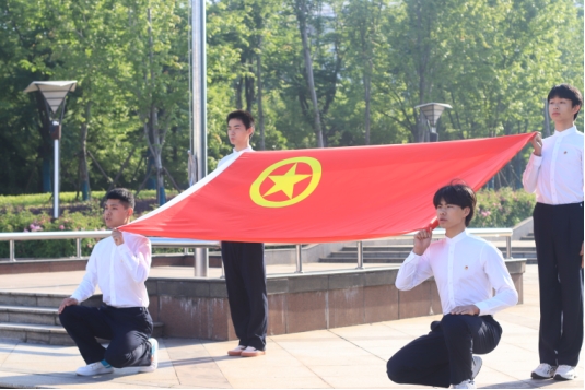 在鲜艳团旗的见证下,