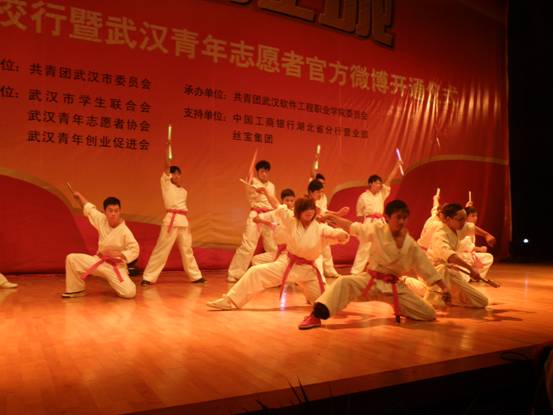 11月24日19:30,在我校体育馆举行了隆重的“爱我江城”主题活动文艺晚会暨武汉青年志愿者官方新浪微博开通仪式。YBC(Youth Business China中国青年创业国际计划)YBC评审委员会主席杜葵、全国办公室主任邹叔君、团市委书记沈涛、团市委副书记陈隽罡、我校校长马蜂、校党委副书记戴向军等领导和来自全国的30余名青年创业导师们、2600余名学生共同观看了这场晚会。