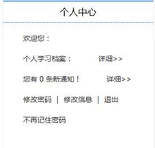 3.登录后显示个人中心,点击个人学习档案可以查看个人学习记录。