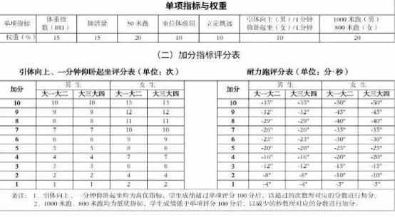 (三)引体向上/1分钟仰卧起坐、耐力跑评分标准