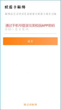 若密码忘记,点击最下边【验证码解绑】,输入完美校园发送验证码,进行解绑。