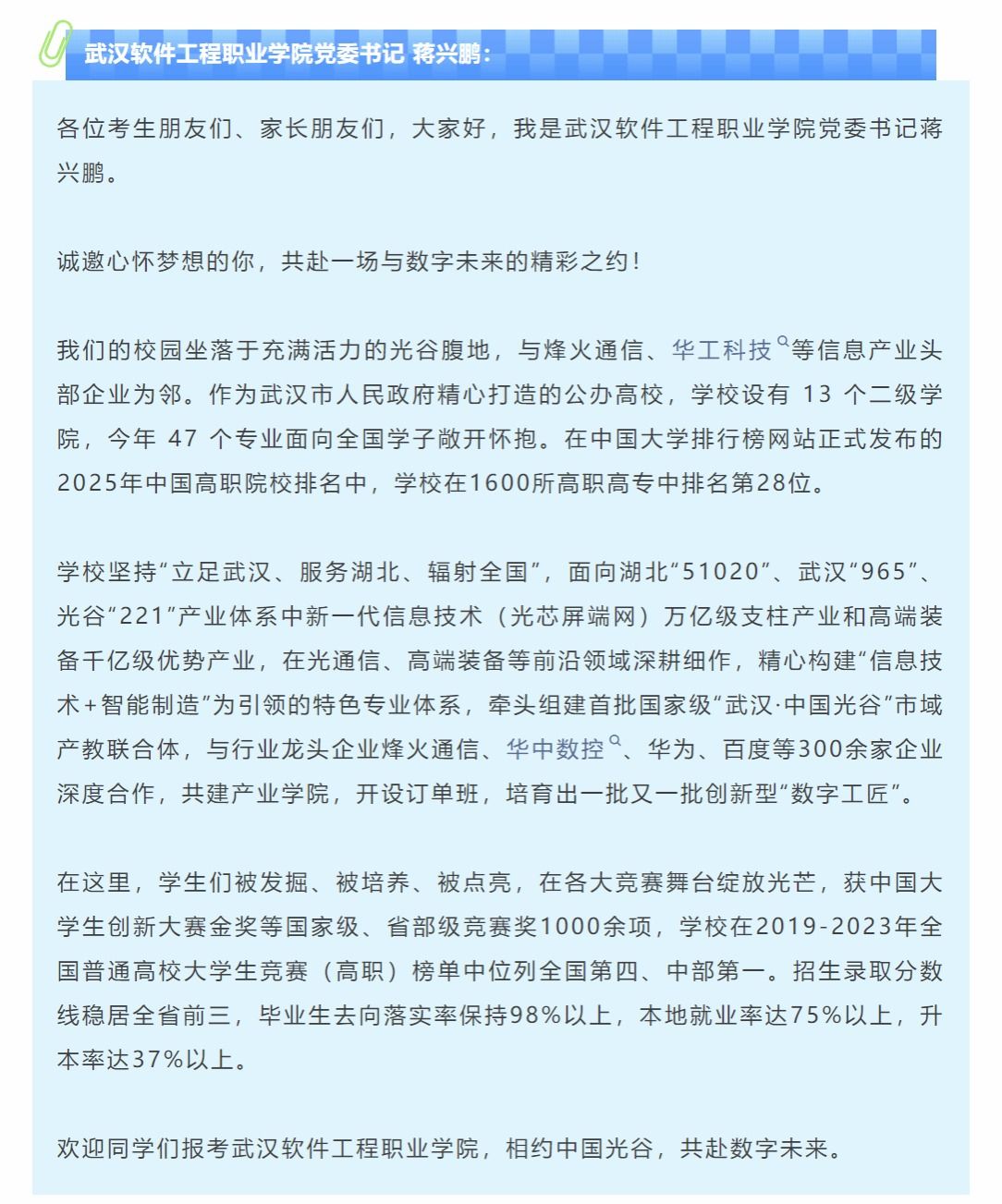 百校争流 书记校长喊话|武汉软件工程职业学院党委书记蒋兴鹏:共建产业学院,培育“数字工匠”