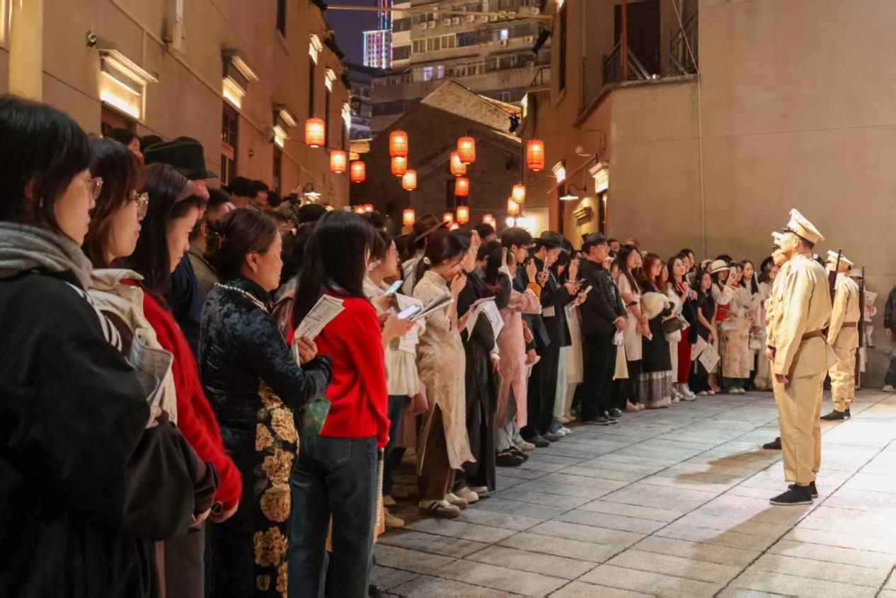 此次活动是该校突破传统思政教育模式的积极探索,旨在让红色教育从“单向灌输”变为“沉浸体验”。活动选址承载着厚重红色记忆的保元里——这里曾是中共武汉地下市委秘密活动的重要场所,革命先辈曾以隐蔽身份开展艰苦卓绝的地下斗争,见证了民族危亡之际的坚守与抗争。师生们换上充满年代感的服饰,化身不同时代角色,在《保元风云》打造的真实历史场景中参与剧情推演,通过秘密接头、线索破解等互动环节,亲身感受1938年的武汉风云,在角色扮演中实现与历史的跨越时空对话。