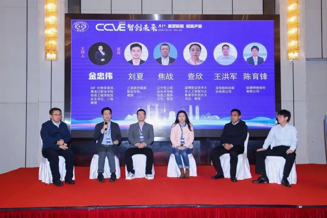 CCF VC常务委员、黑龙江职业学院信息工程学院党总支书记、二级教授金忠伟主持Panel环节。他总结,新一代信息技术正驱动职业教育迈向产教深度融合的创新发展阶段。大家围绕“AI+教育”模式、课程重构与实践场景优化路径等,探索深化产教融合、构建校企协同机制。期待大家携手聚力,为新一代信息技术领域职业教育高质量发展持续贡献智慧与力量。