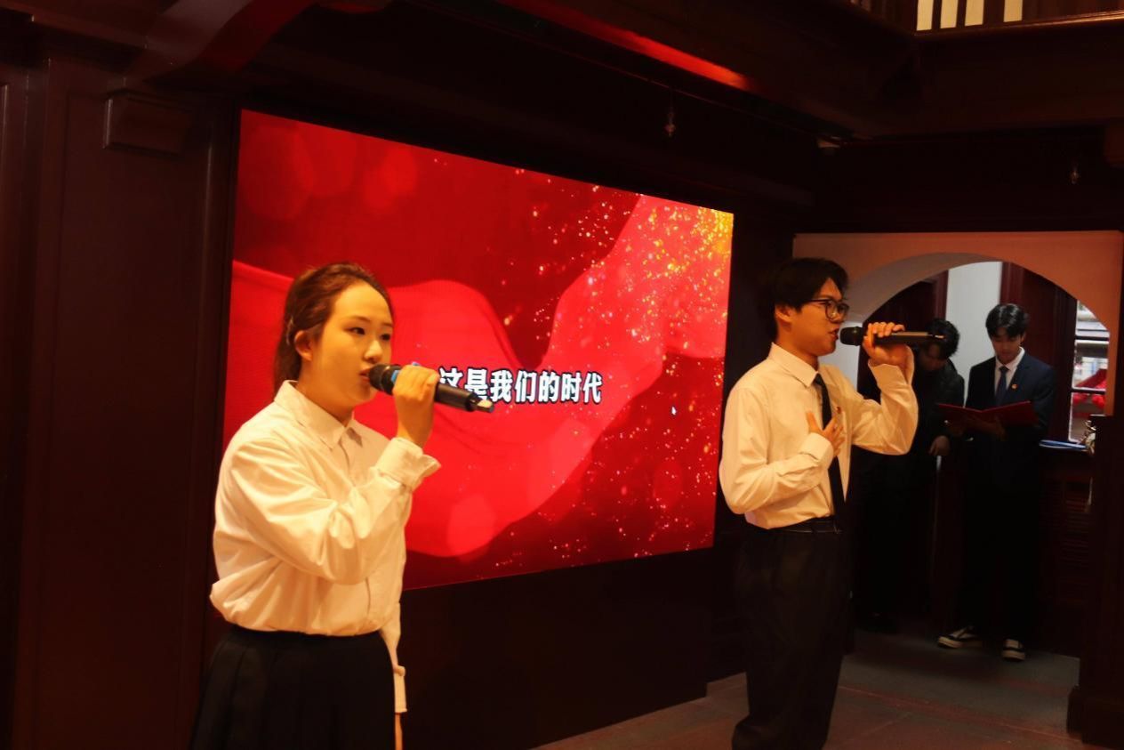 学校师生代表现场表演了诗朗诵《向太阳》、情景讲述《陈怀民:抗战烽火中的绝恋与忠魂》以及歌曲《强国一代有我在》。精彩的演绎、嘹亮的歌声,重温了那段战火纷飞中感人至深的英雄故事,也为接下来的揭牌仪式预热。