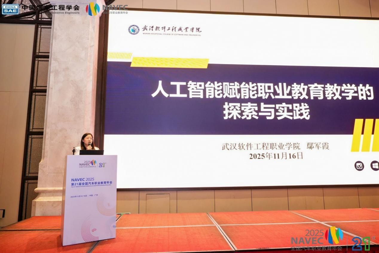 全国汽车职业教育年会由11月14-16日,第21届全国汽车职业教育年会在广州召开,本届年会由中国汽车工程学会主办,以“破界融合、数智跃迁”为主题,首次采用 “会展一体” 模式,紧扣汽车产业发展和职业教育政策脉搏。武汉软件工程职业学院参加汽车职业教育办学成果展,并承办专业领域分论坛。